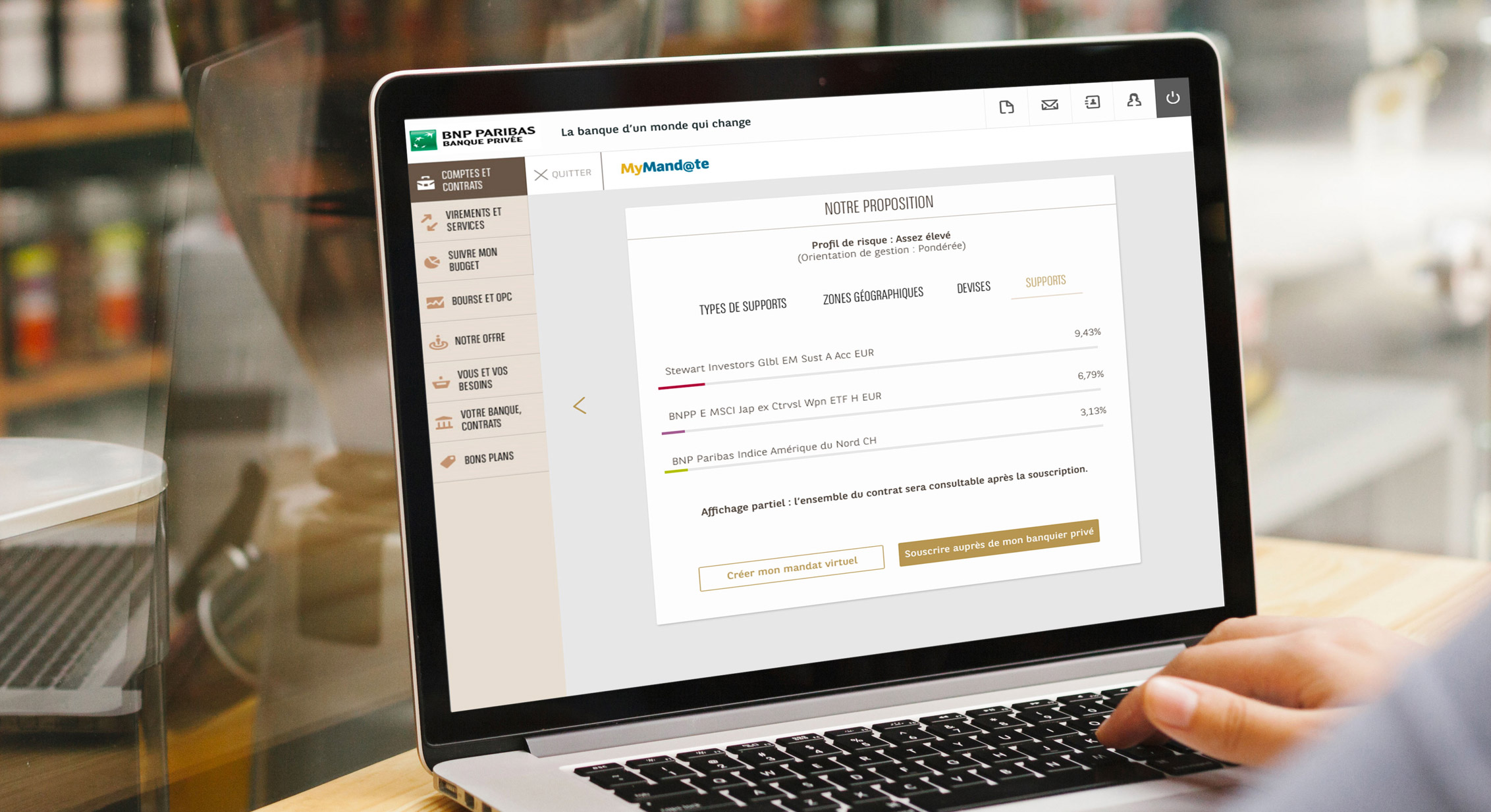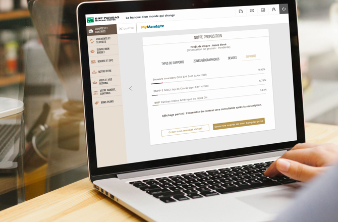 MyMand@te est une offre innovante de gestion sous mandat fondée sur le savoir-faire historique de BNP Paribas en matière de gestion de portefeuille, et sur des technologies avancées d’optimisation financière.